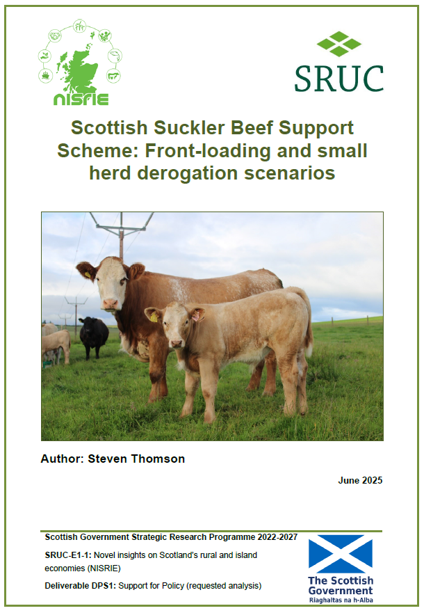Scotland has retained ‘voluntary coupled support’ for its suckler beef herd since 2005 in recognition of the importance and vulnerability of the sector. From 2025, the Scottish Government have introduced a new 410-day dam calving interval eligibility condition on SSBSS calves to introduce environmental conditionality into the scheme that aims to reduce Scottish Government payments associated with technical inefficiencies and excess greenhouse gas emissions. This report (available to download in the green tab at the bottom of the page) provides an assessment of the support impacts from various front-loading and small claim derogation scenarios.