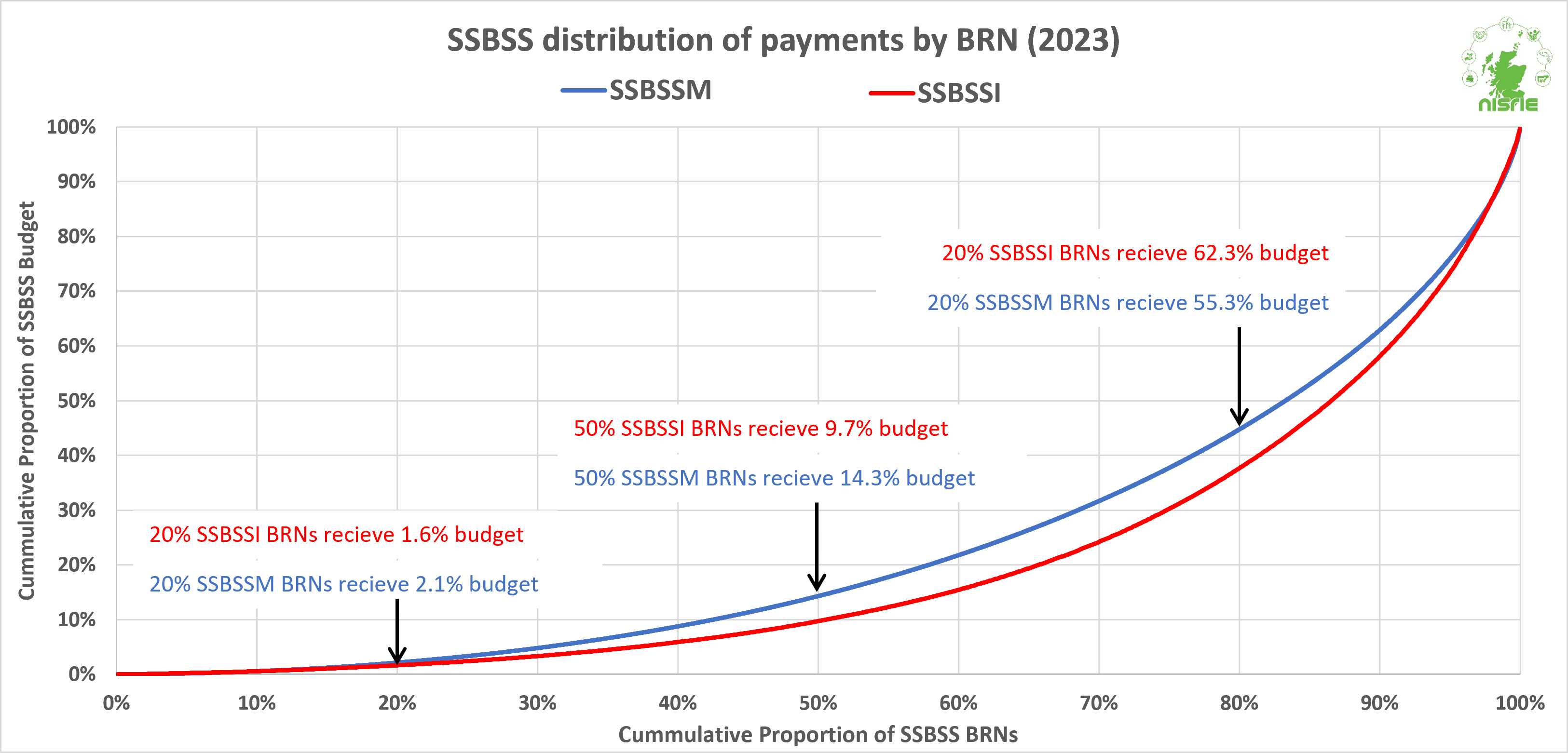 - Analysis shows that the smallest 20% of SSBSS-claimant businesses only accounted for 1.6% of the scheme’s island payments and 2.1% of the scheme’s mainland payments in 2023. In contrast, the largest 20% of scheme claimants in 2023 accounted for 62% of the island's budget and 55% of the mainland budget.