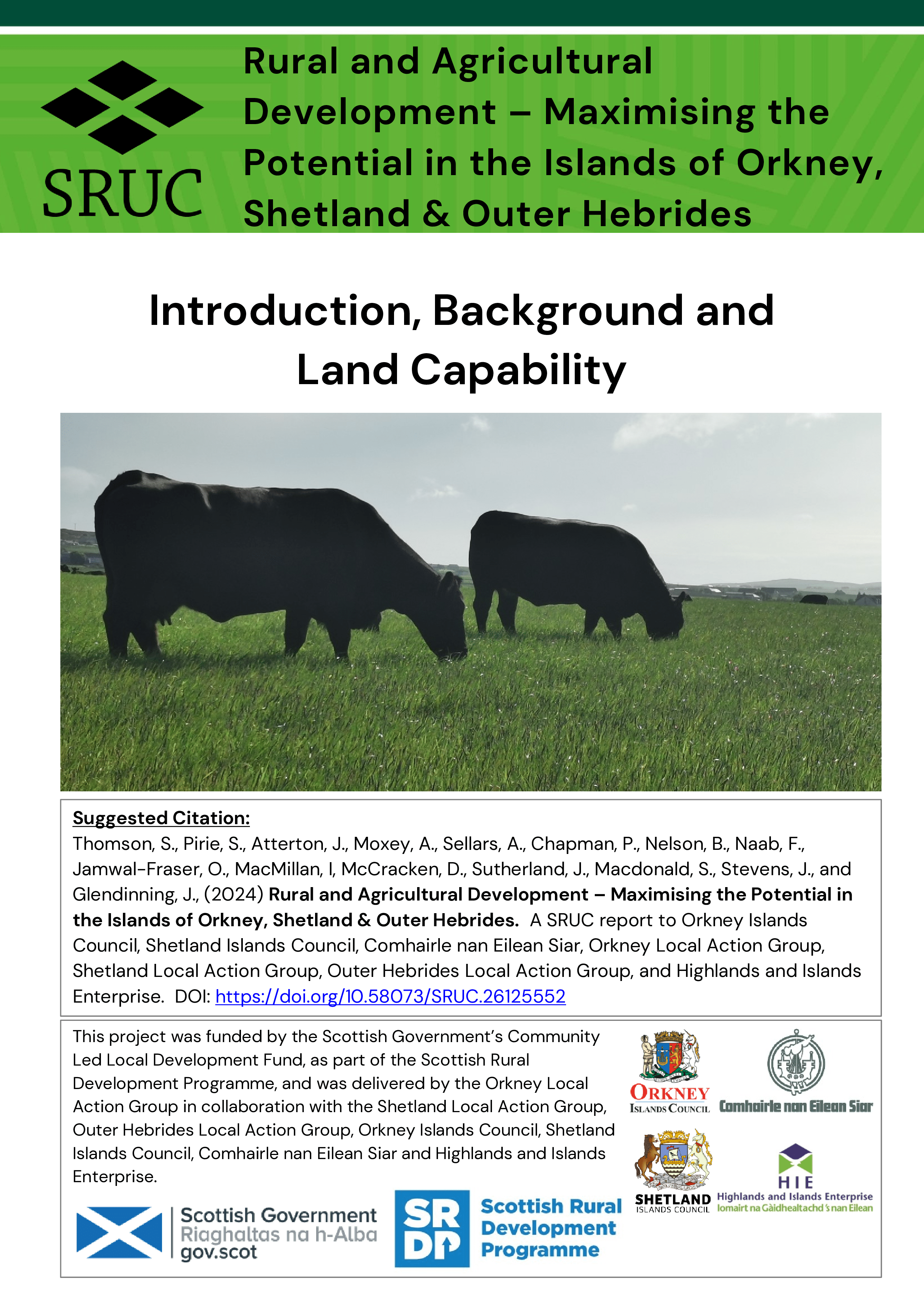 The Introduction, Background and Land Capability sections of the SRUC report Rural and Agricultural Development: Maximising the potential in the islands of Orkney, Shetland and Outer Hebrides can be downloaded as a stand alone document from the link below. A selection of the points raised in these sections of the report include: